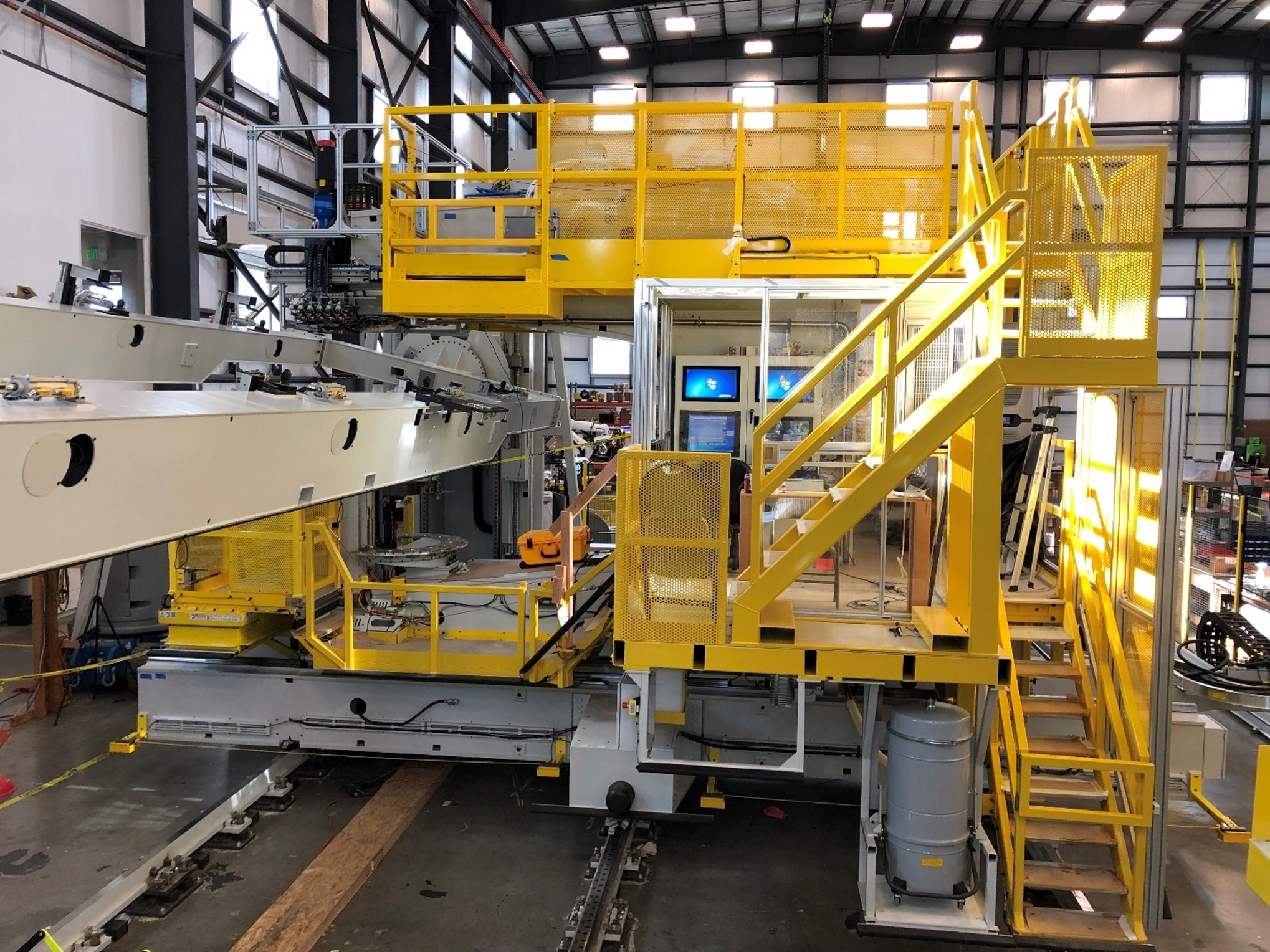 In an Automatic C-Frame Riveter the rivet position is controlled by a CNC control running a part program. The part is held in a barge that moves the part from rivet location to rivet location. For these machines the X and Y axes are on the C-Frame.